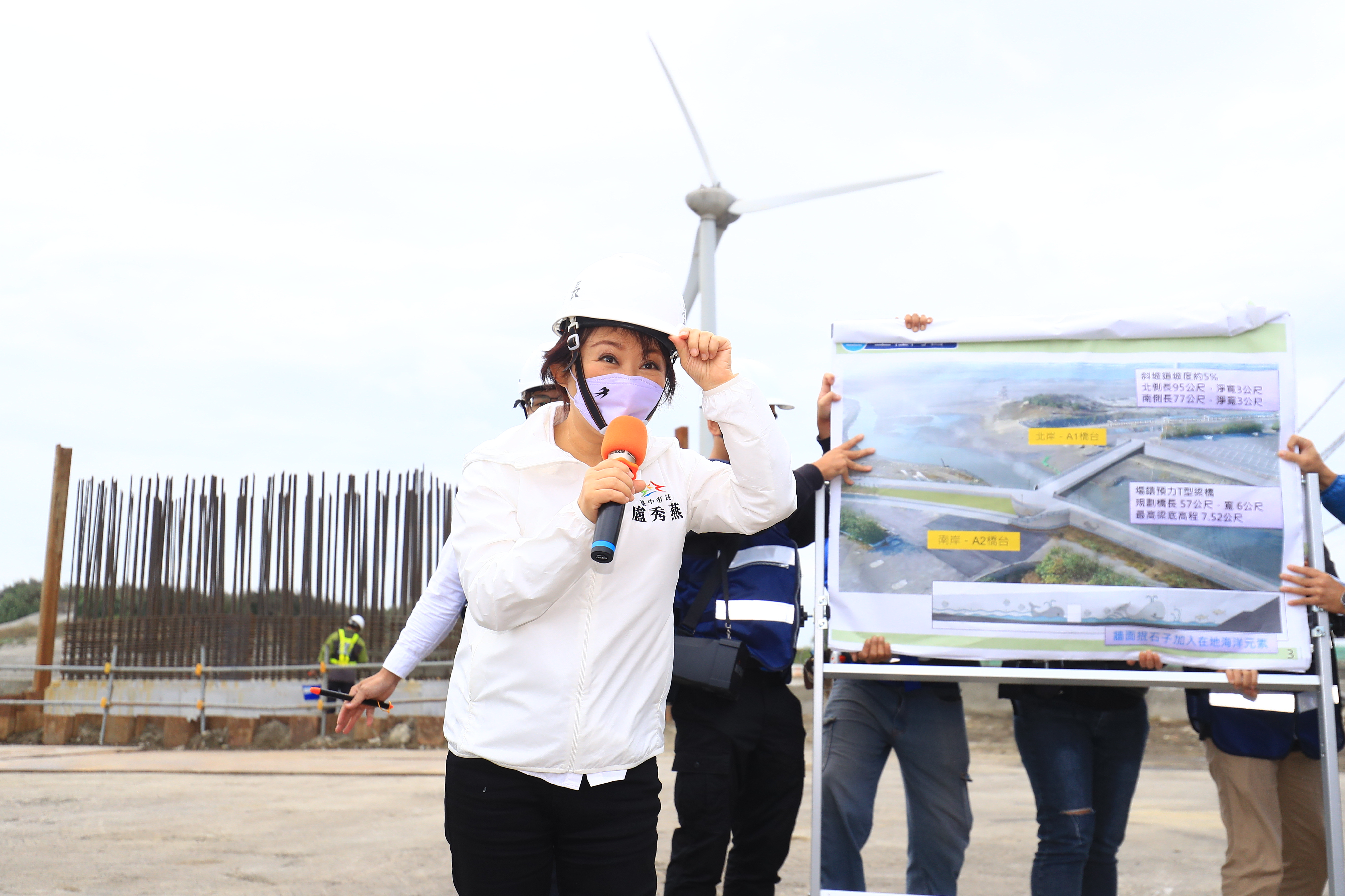 台中大安區北汕溪虹橋為串聯北岸濱海樂園與南岸媽祖園區的人行橋梁,台中市政府今年7月辦理北汕溪虹橋改建工程,預計明年5月底完工啟用,市長盧秀燕今(18)日親自前往視察,盧市長表示,大安區虹橋104年即腐蝕嚴重但遲未處理,她上任後10810月即拆除橋梁完成,以防民眾穿越危險,盼重建的新橋梁更加安全、穩固、耐用,基樁打深打牢,早日完工嘉惠地方。