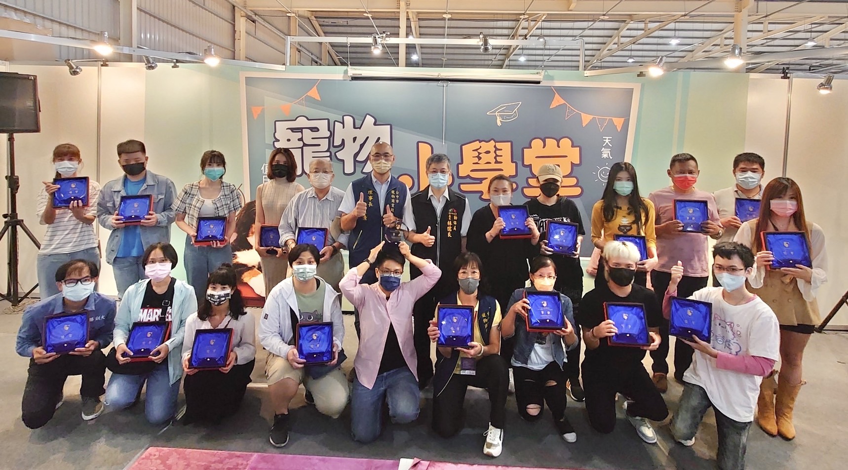 台中市動物保護防疫處今(21)日於台中國際展覽館辦理今年度特定寵物業評鑑業者頒獎,針對動物飼養的健康狀況、法規文件、不再繁殖寵物的安置情形等條件進行評鑑,共25家業者榮獲優等,表現優良的業者們齊聚一堂,相互勉勵,切磋學習,分享經驗,共同為提升動物福利努力。