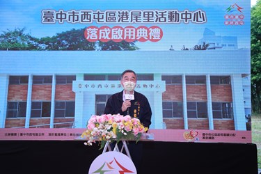 台中市政府傾聽地方民意,斥資逾1,838萬元興建「西屯區港尾里活動中心」,今(31)日落成啟用,副市長黃國榮出席啟用典禮表示,這是「港尾里的大喜事」,港尾里人口持續增加,但長期缺乏公共活動場所,此案是市長盧秀燕上任前就提出的規劃,盧市長上任後指示相關局處積極編列預算、取得用地、發包,雖然工程不大,但落成後可發揮很大的效益,未來不管是里民聚會、休憩,很多活動都可在此舉行,對里民交流及市政推廣都相當有幫助。