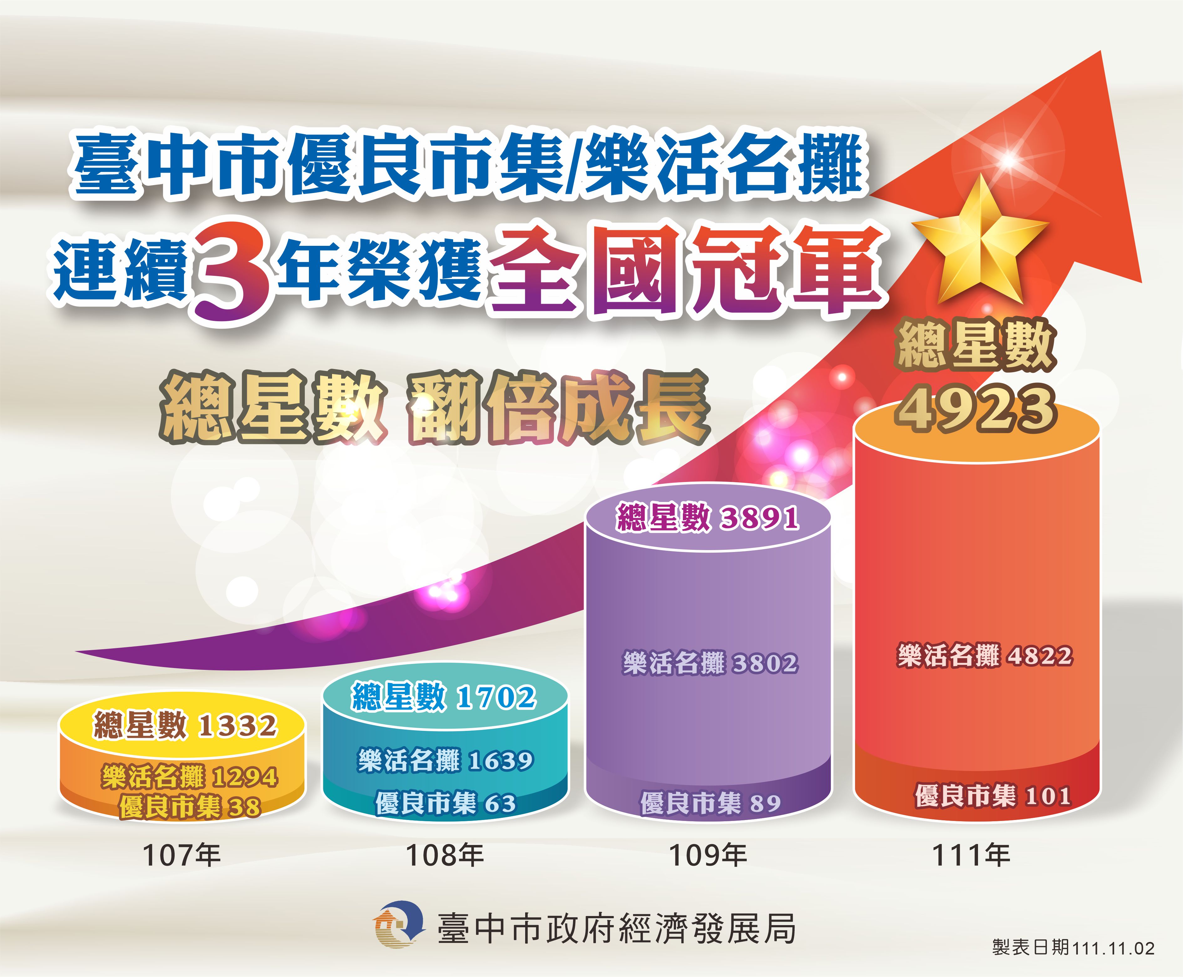 台中市今年度市集與名攤共計4,923顆星,連3年獲得全國冠軍