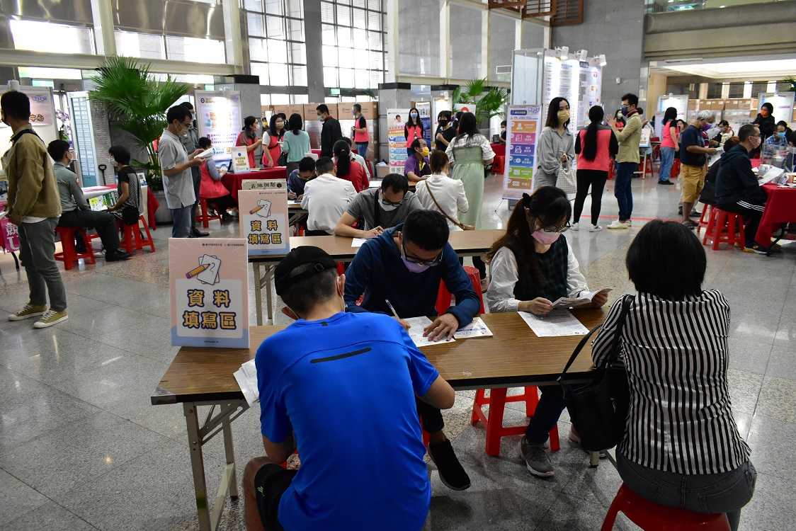 台中市政府勞工局昨(12)日於陽明市政大樓舉辦「職場幸福力」徵才活動,邀請日商樂比亞、橋椿金屬、麗寶樂園、先進光電、久裕興業與聯亞科技等30家在地優質企業設攤招募,提供1,700個工作機會,包括558個職缺月薪達4萬元以上,555個職缺不限學經歷,吸引超過600人前來求職,初步媒合率達六成五。