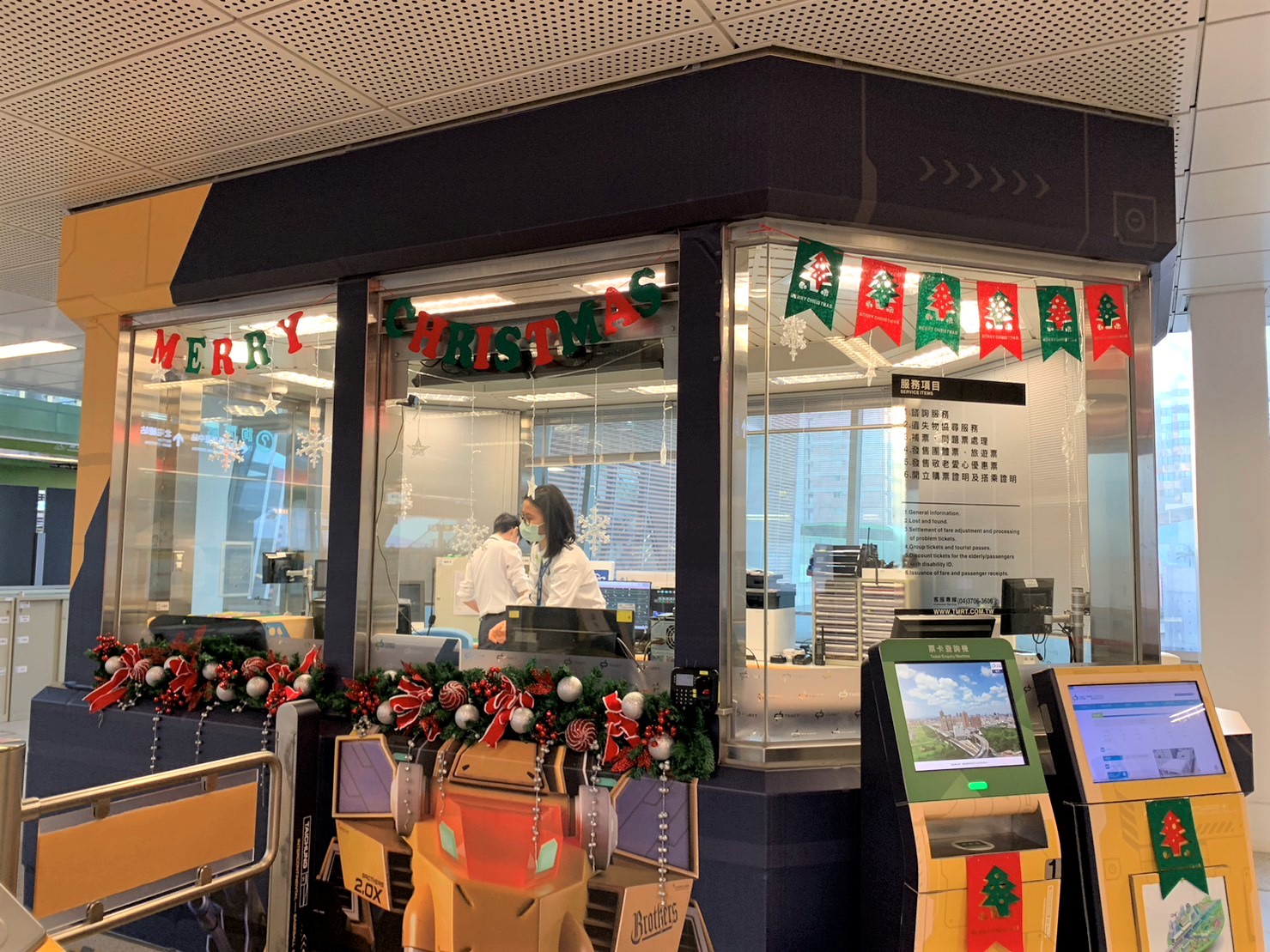 台中捷運各車站詢問處均由站務人員發揮巧思,妝點不同的聖誕裝飾。