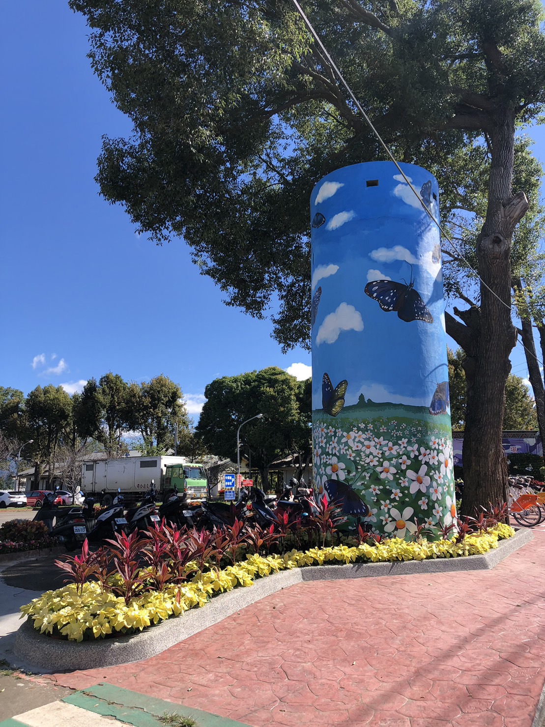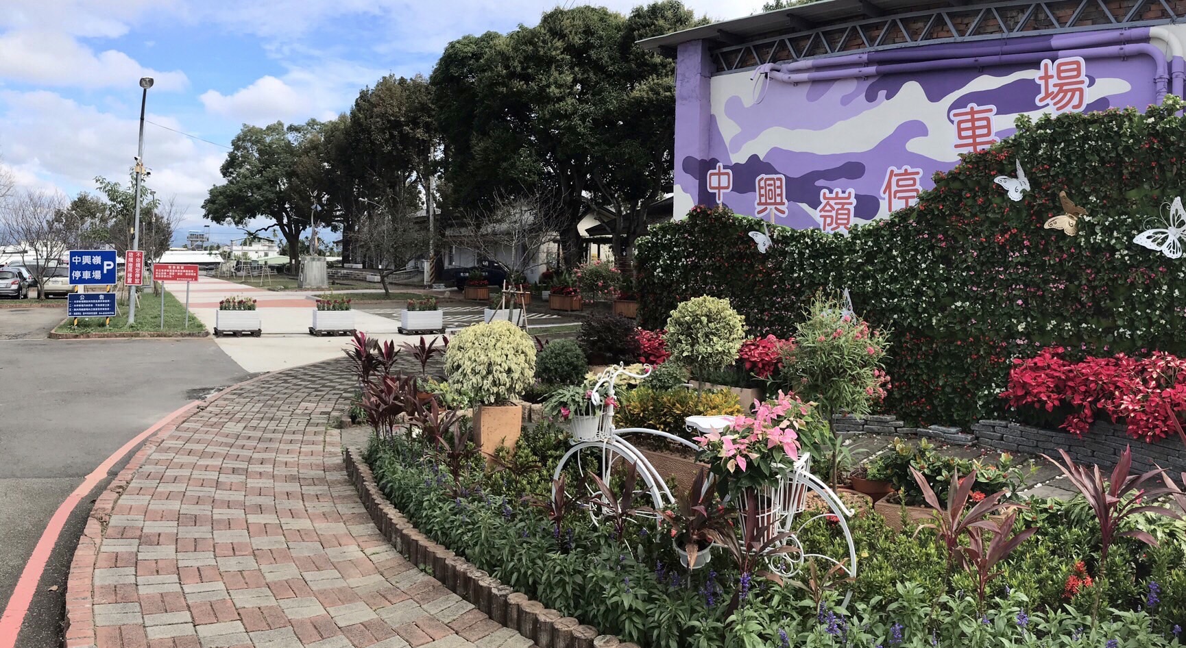 交通局長葉昭甫表示,「2022台中國際花毯節」即日起至12月18日在新社區種苗改良繁殖場二苗圃登場,配合國際花毯節展出,新社圓環附近的中興嶺停車場改頭換面,規劃在地居民重視的紫斑蝶生態保育議題,包含入口區花卉節慶意象裝飾、附屬建築物哨亭外牆紫斑蝶生態願景圖更新彩繪、舊營舍外牆保育紫斑蝶特色3D彩繪、新塗裝紫色迷彩與星願紫風車場域景觀裝飾佈置等,讓民眾感受全新停車體驗。