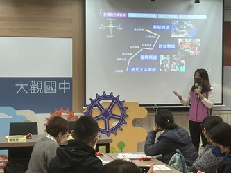 新北市大觀國中校長羅珮瑜說,學校閱讀團隊以「META閱宇宙.大觀展星空」為主題,透過有效整合運用學校內外部資源,打造優質閱讀環境,結合生涯教育與國際教育,提升學生後疫情時代的自主學習能力,讓每一位學子都是愛閱讀的熠熠新星。