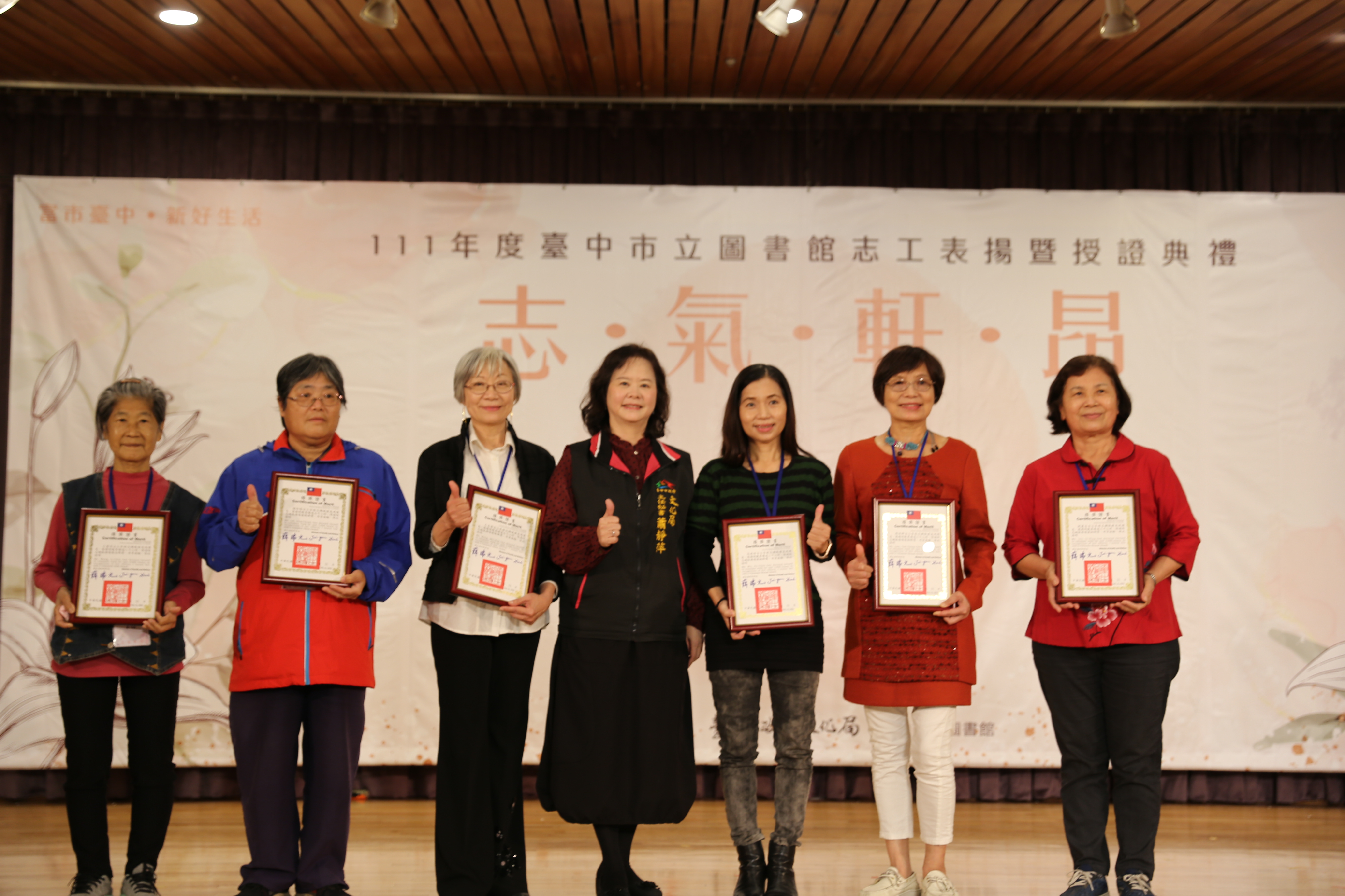 中市圖志工表揚暨授證典禮 年度服務總時數破16萬小時