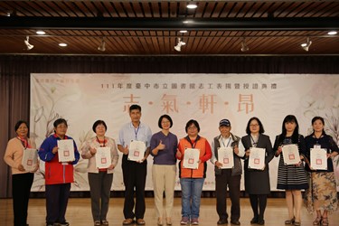 熱情完勝疫情!台中市立圖書館志工隊今年在疫情影響之下,志工人數突破2,000名、年度服務總時數更高達16萬小時,一舉刷新志工隊成立以來新紀錄!今(10)日下午在大墩文化中心舉辦「志氣軒昂!111年志工表揚暨授證典禮」,台中市政府文化局主任秘書蕭靜萍出席典禮表示,台中市無論在整體閱讀力、每人借閱冊數方面,都是六都中表現績優城市,圖書館志工團隊正是推動城市閱讀最大的動能,感謝圖書館每位志工的辛苦奉獻!