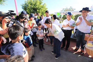 盧市長表示,台中是全國第二大城市,有900多座大大小小的公園,希望民眾到公園不只運動,也能一起野餐,因此創辦台中第一屆的市民野餐日,讓大家徜徉在幸福當中。盧市長強調,中央公園是全台灣市中心最大的公園,面積67公頃,是台北大安公園的2.58倍,今天超過萬人在中央公園四大區野餐,鼓勵大家面對台灣防疫逐漸解封,悶了兩三年後,能跟所愛的人、親朋好友或左右鄰居相約走出戶外,甚至認識新朋友。