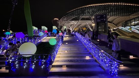 從台北搭車來台中訪友的民眾,行經火車站大平台見到台中火車站大階梯猶如藍色燈海,還飄浮著一顆一顆糖果色系繽紛的耶誕燈球,忍不住拿著手機拍照,搭配廣播系統播放的耶誕歌曲,溫暖的旋律迴繞在各個角落,呼應日劇「First Love初戀」主軸為「藍色是屬於愛人們的顏色」,讓追劇的乘客直呼,「台中,好浪漫的城市!」