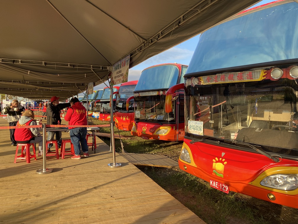 「交管人員的指揮導引功不可沒!」葉局長強調,因應會場周邊沒有停車場的情況,除了完善的交通規劃及交通管制措施外,也感謝警察同仁執行管制及疏導車流,以及停車場、接駁站等人員的導引與控管;另也感謝民眾配合搭乘接駁車前往會場,讓會場周邊不塞車。