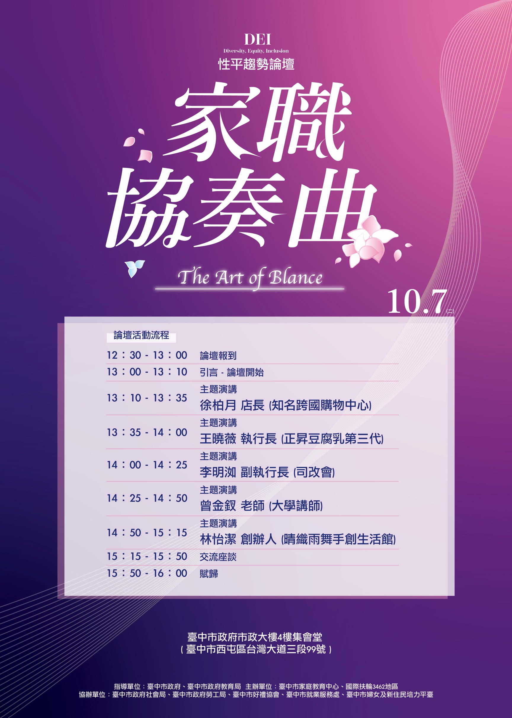 「性平趨勢論壇|家職協奏曲 The Art of Balance」活動 歡迎踴躍參加