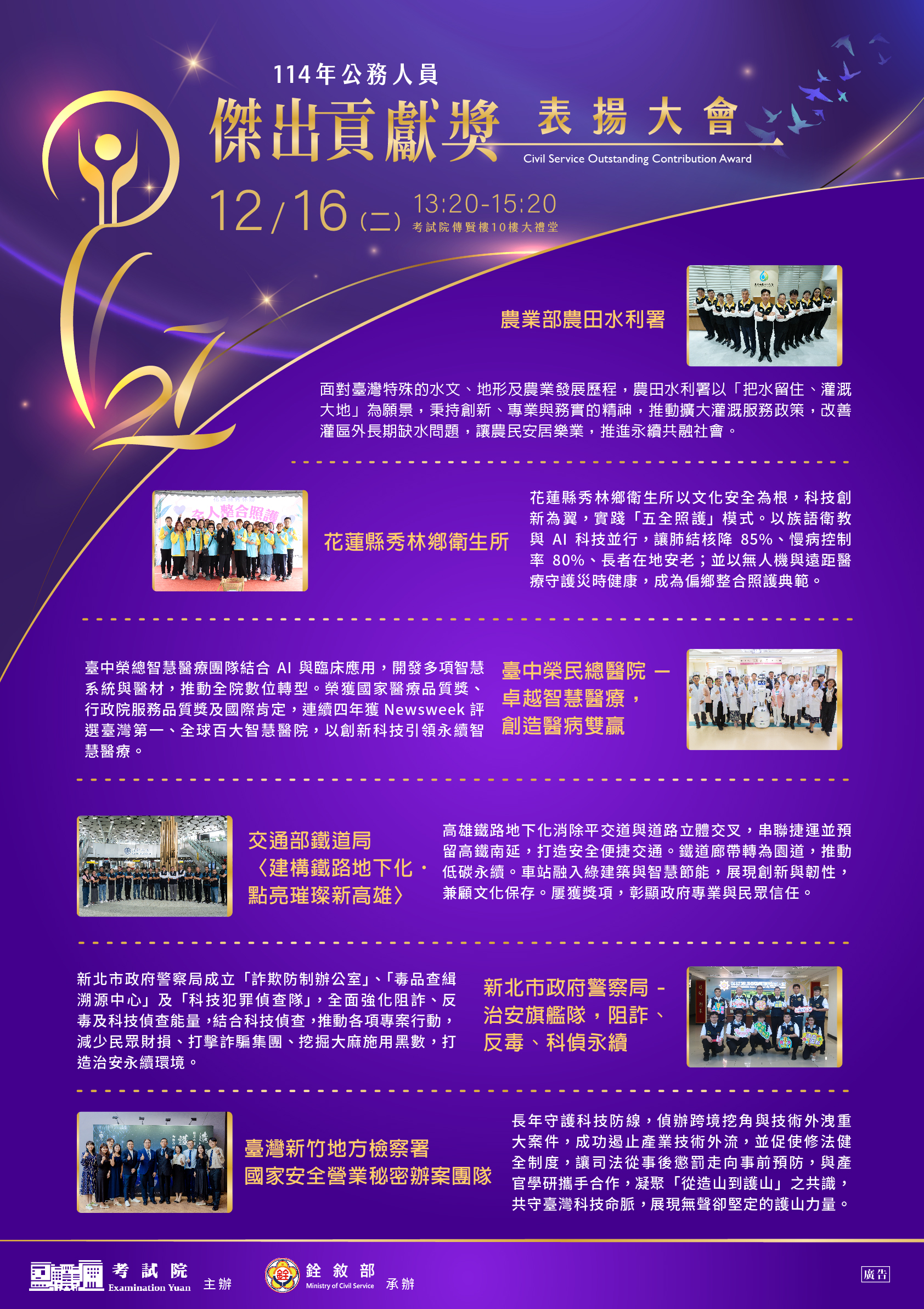 【轉知】114年公務人員傑出貢獻獎表揚大會