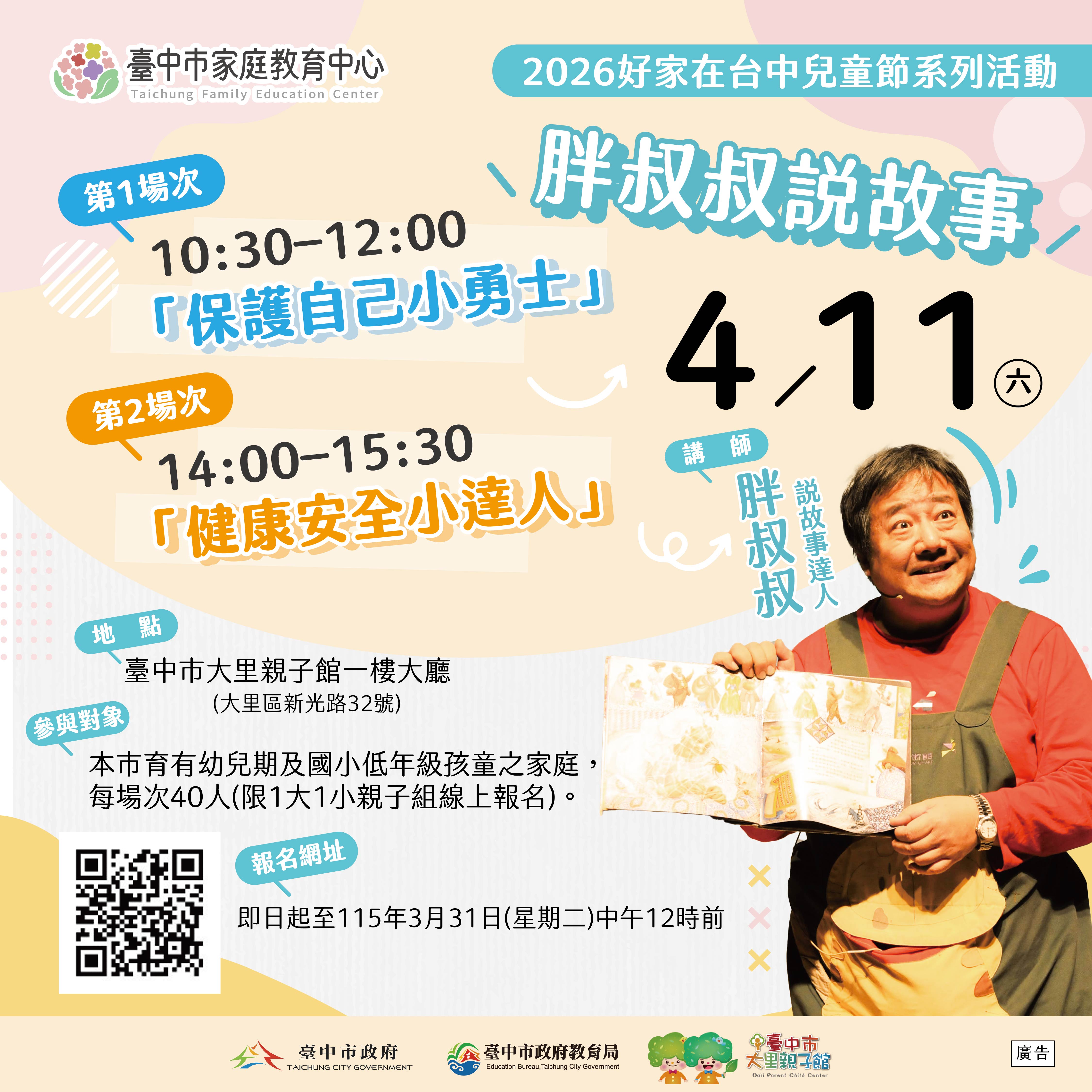 「2026好家在台中兒童節系列活動」暨 「115年度第二季親職教育課程」歡迎踴躍參加