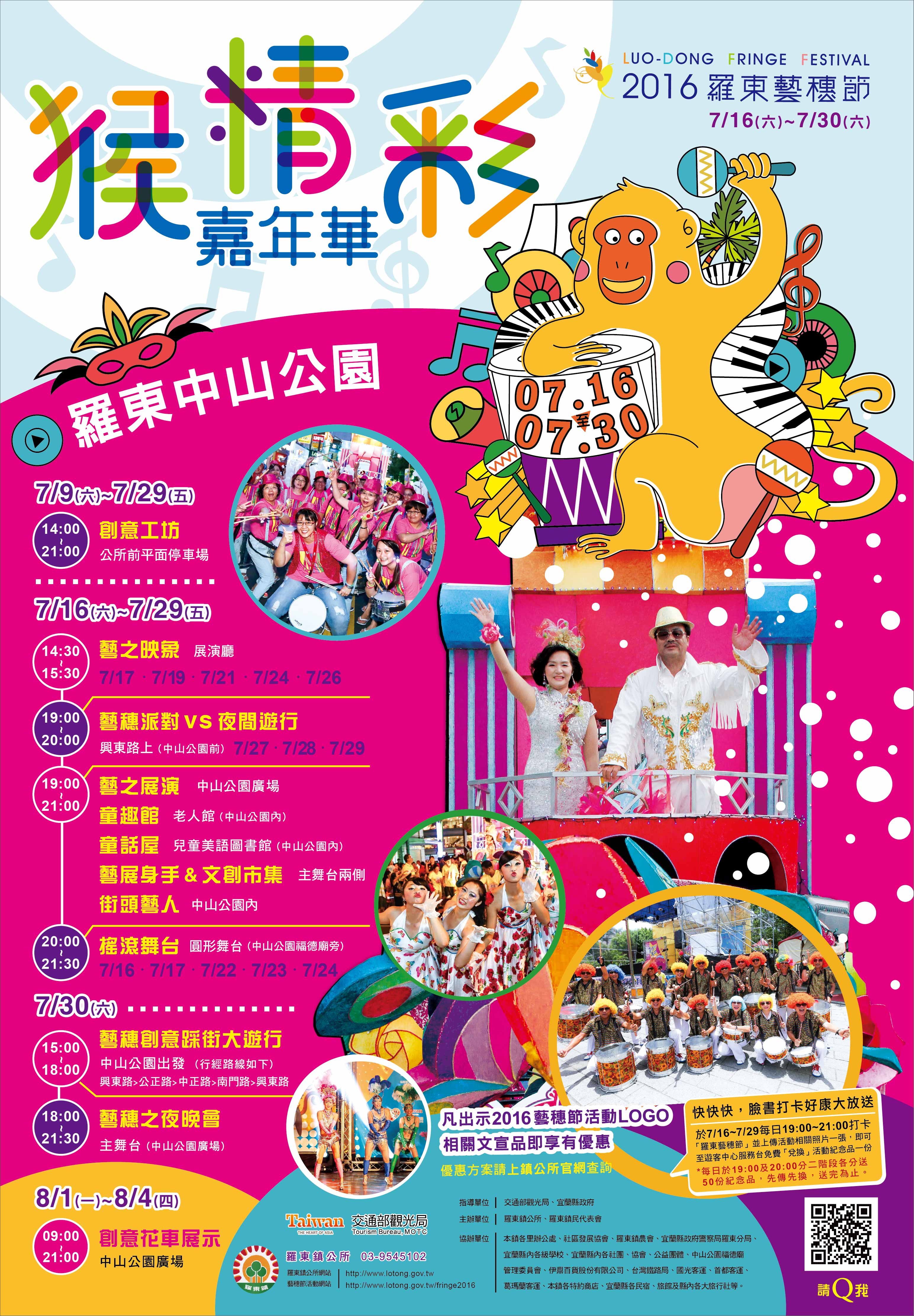 一、宜蘭縣羅東鎮公所105年7月11日羅鎮觀字第1050012474號函辦理。二、本活動期間自今(105)年7月16日(六)至7月30日(六),活動地點於本鎮中山公園及公所周邊舉行。 聯絡人:劉小姐 聯絡電話:03-9545102分機381