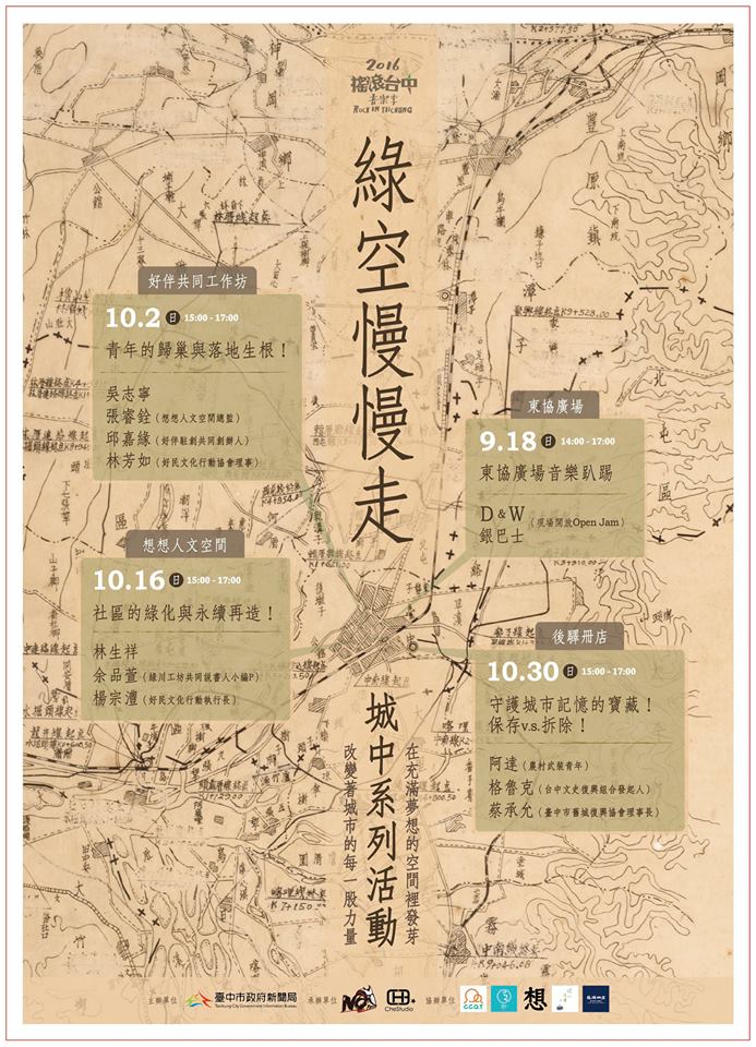 「2016搖滾台中音樂季/綠空慢慢走,城中系列活動」9/18, 10/2, 10/16, 10/30