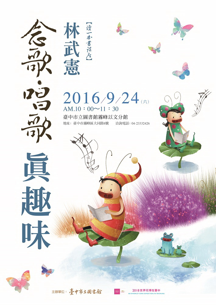 邀請兒童文學作家林武憲分享「念歌‧唱歌‧真趣味」。透過講師帶領民眾吟唱傳