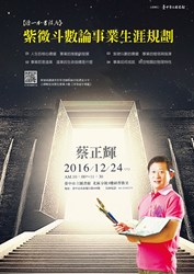 一邀請紫微斗數專家-蔡正輝分享「紫微斗數論事業規劃」,透過閱讀講座在工作上趨吉避凶,並從古老數算的角度,揭開命盤中諸星影響事業的神秘面紗。二、時間:105年12月24日(六)上午10時至11時30分。三、地點:本館北區分館(臺中市北區健行路359號)。四、公教人員全程參與者核予終身學習時數2小時。 聯絡人:曾敬傑 聯絡電話:0424225101#507
