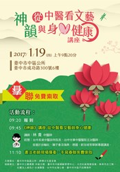 (二)9時45分:《神韻》藝文系列講座-「從中醫看文藝與身心健康」。