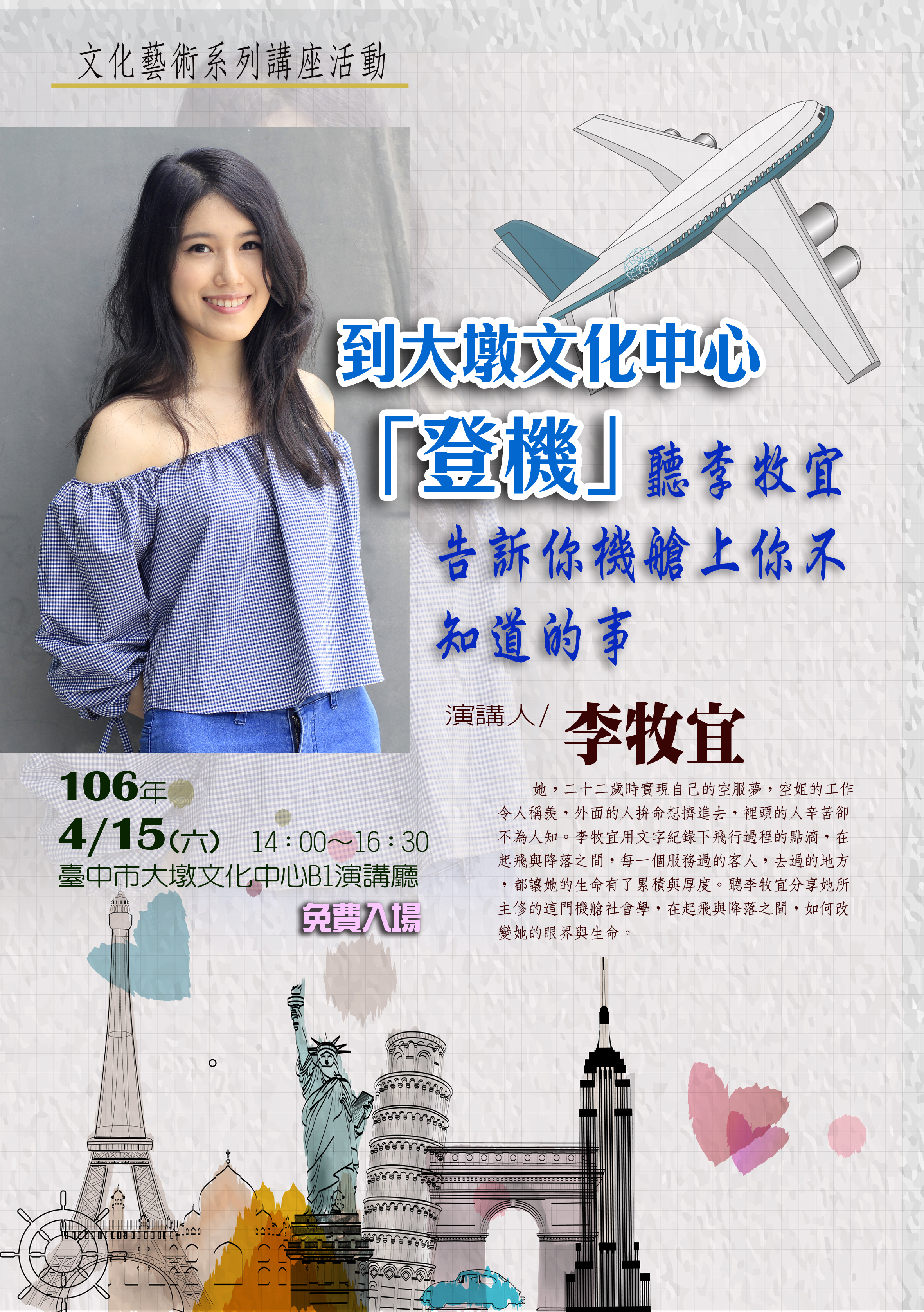 臺中市大墩文化中心 - 「到大墩文化中心『登機』!聽李牧宜告訴你機艙上你不知道的事」